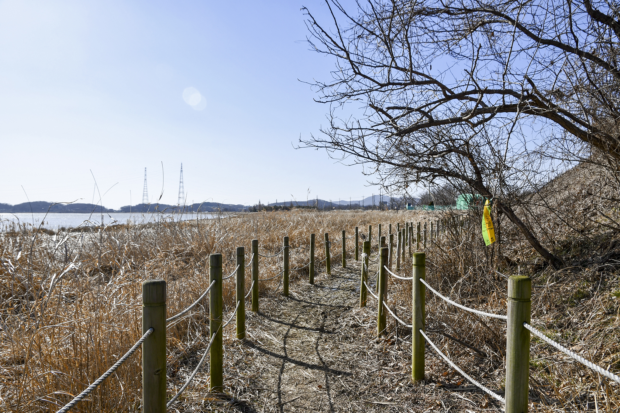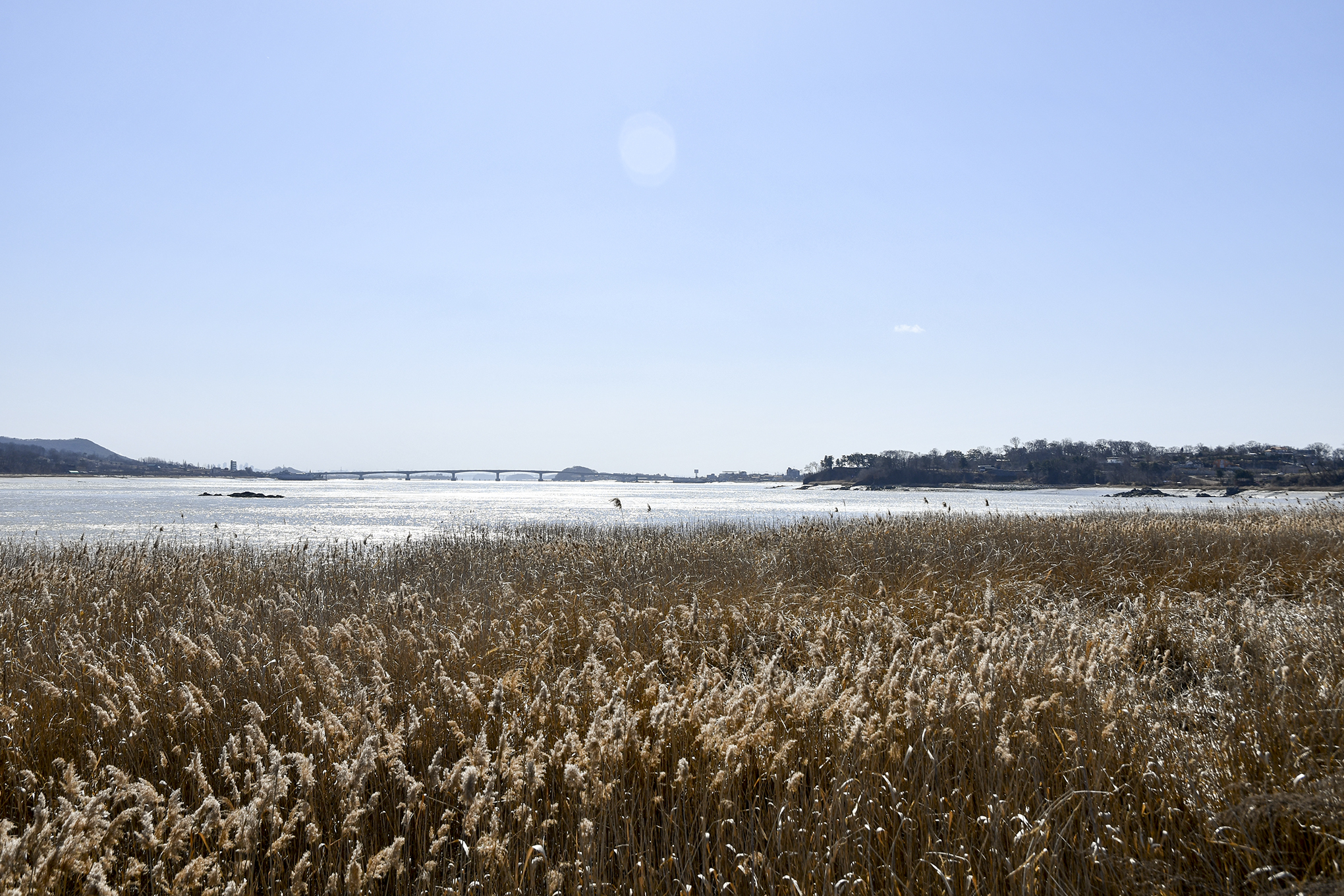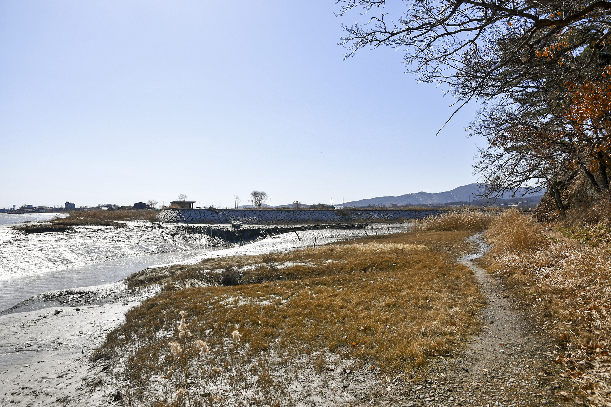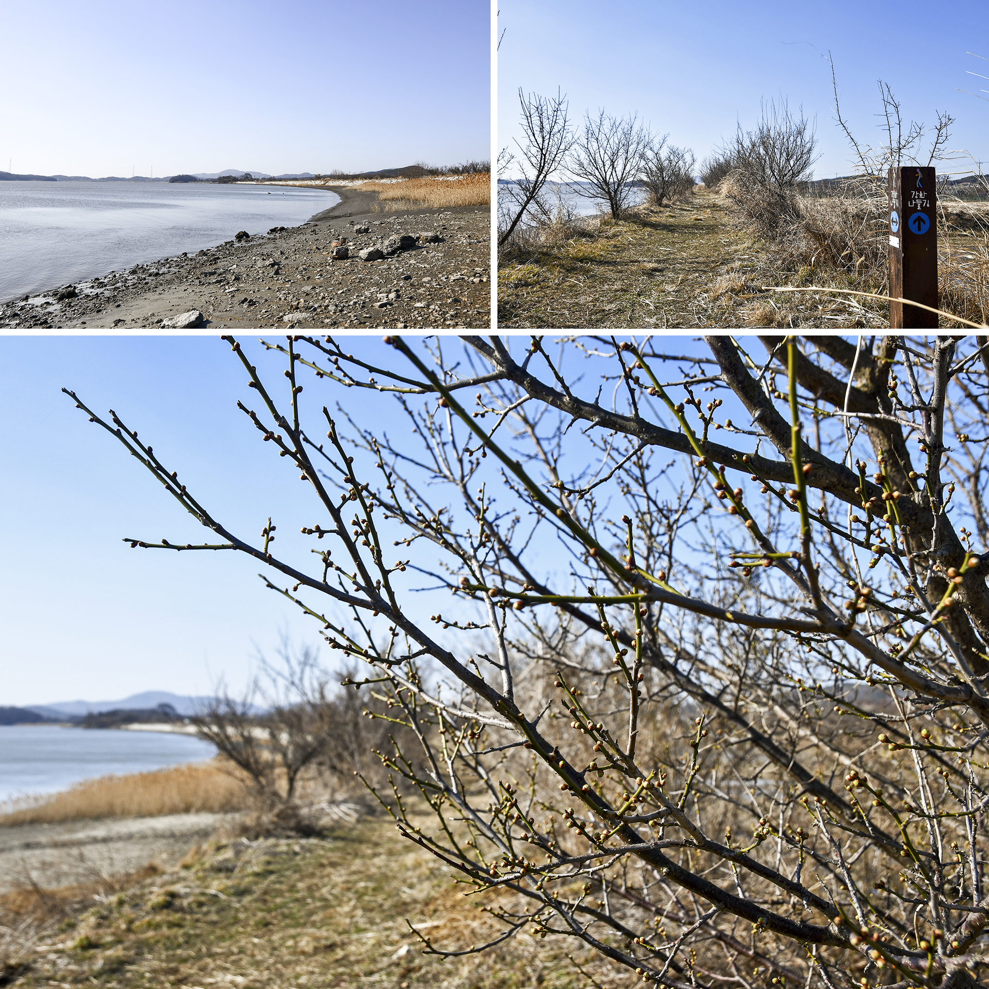 해안으로는 갈대가 바람에 연신 흔들리고, 걷는 길에는 벚나무가 시즌을 기다리고 있다.