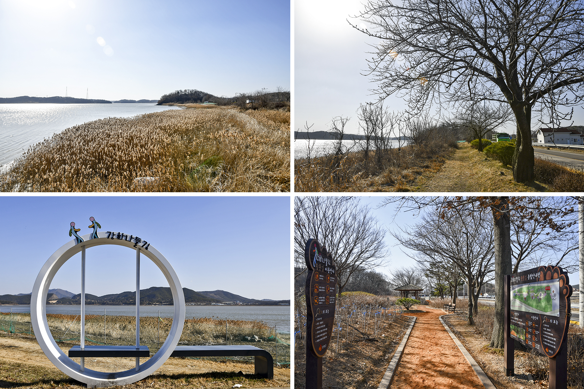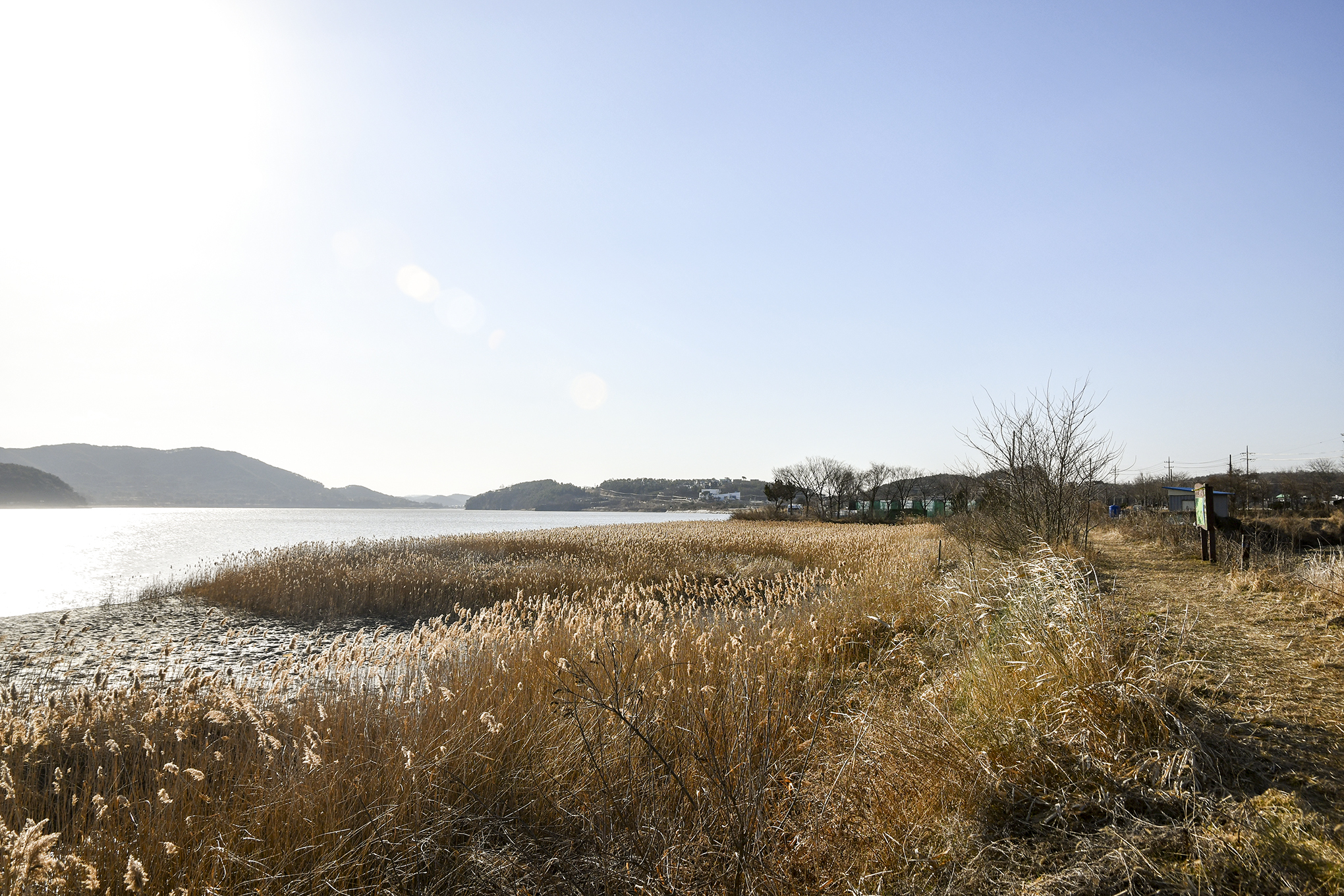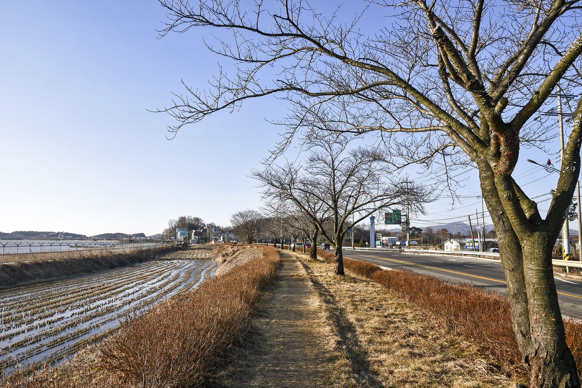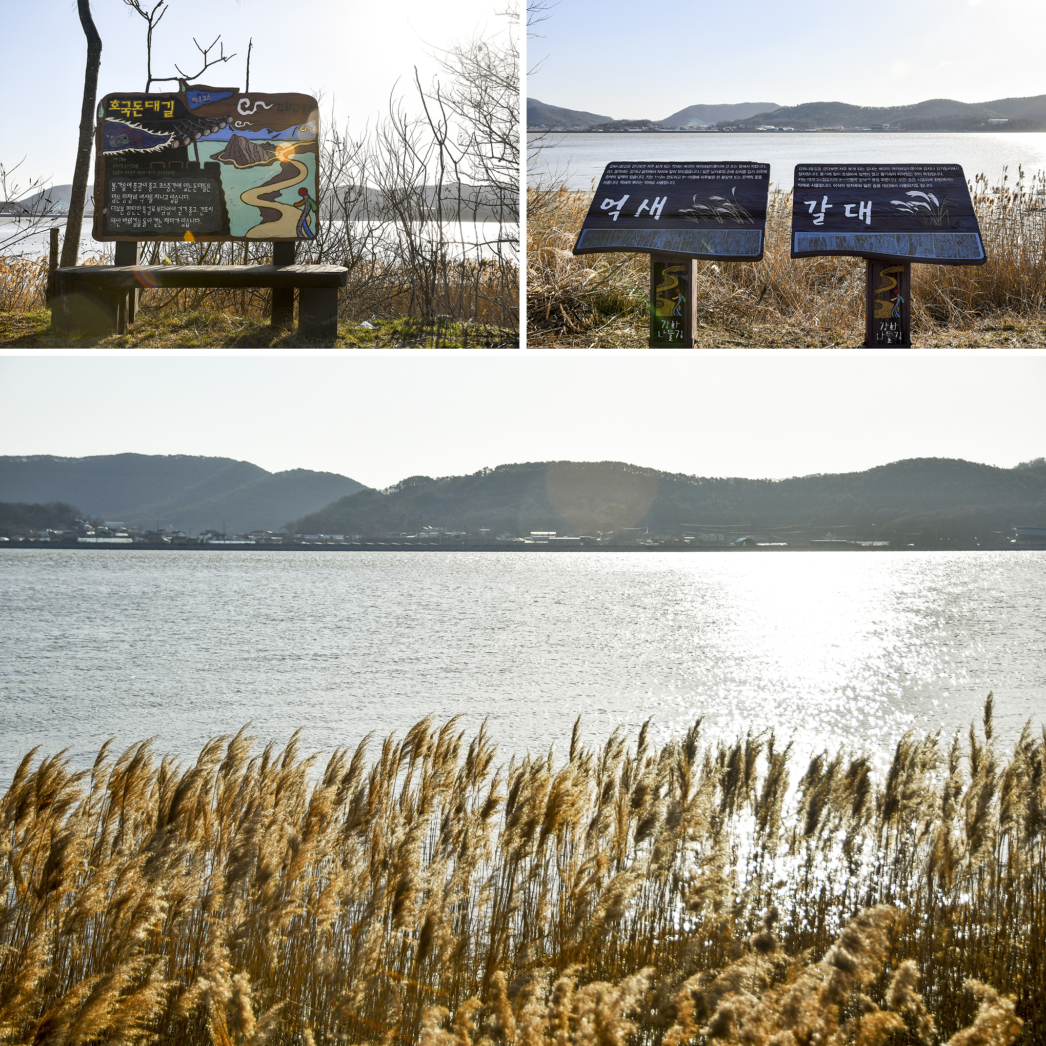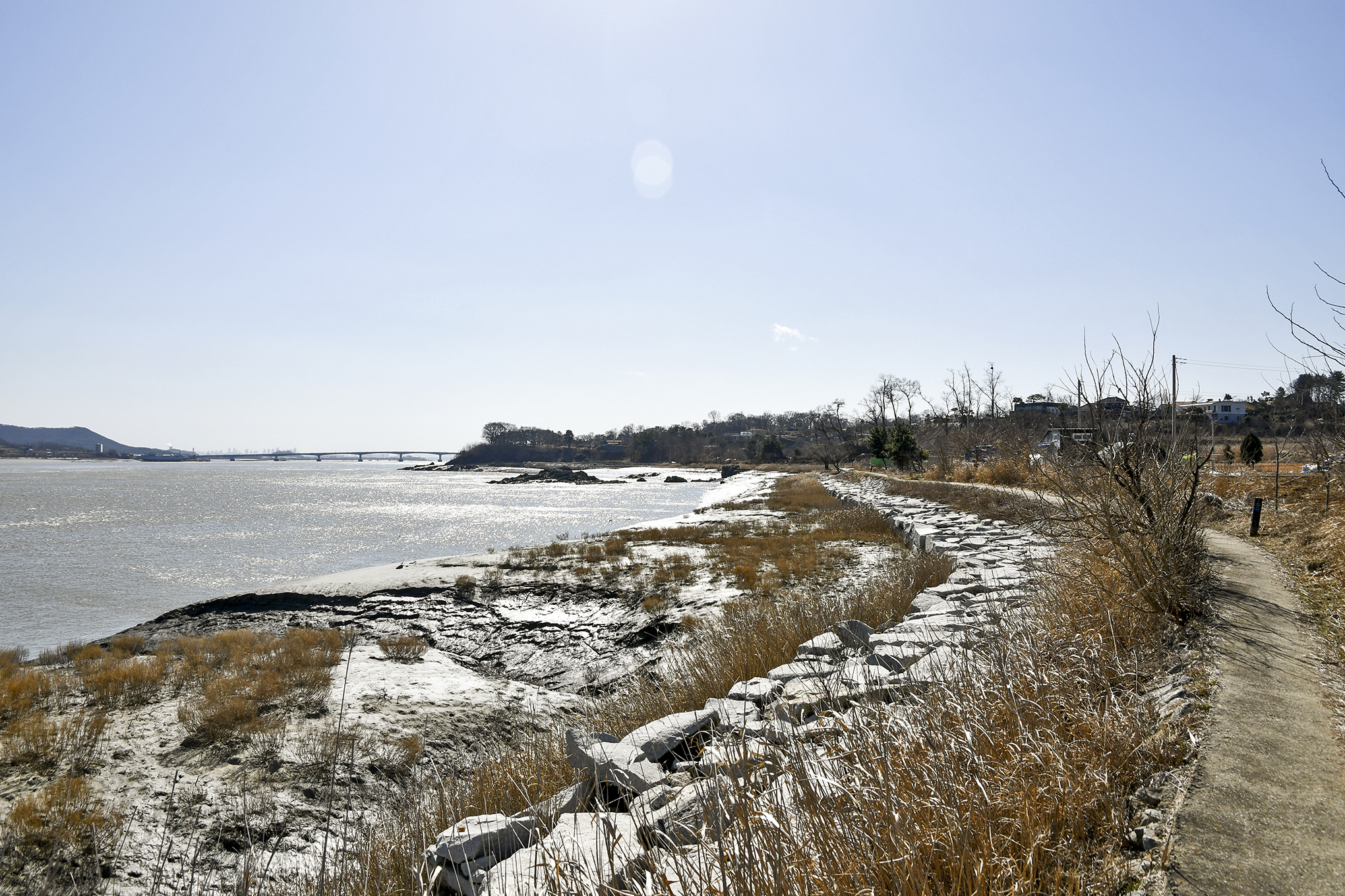 해안으로는 갈대가 바람에 연신 흔들리고, 걷는 길에는 벚나무가 시즌을 기다리고 있다.