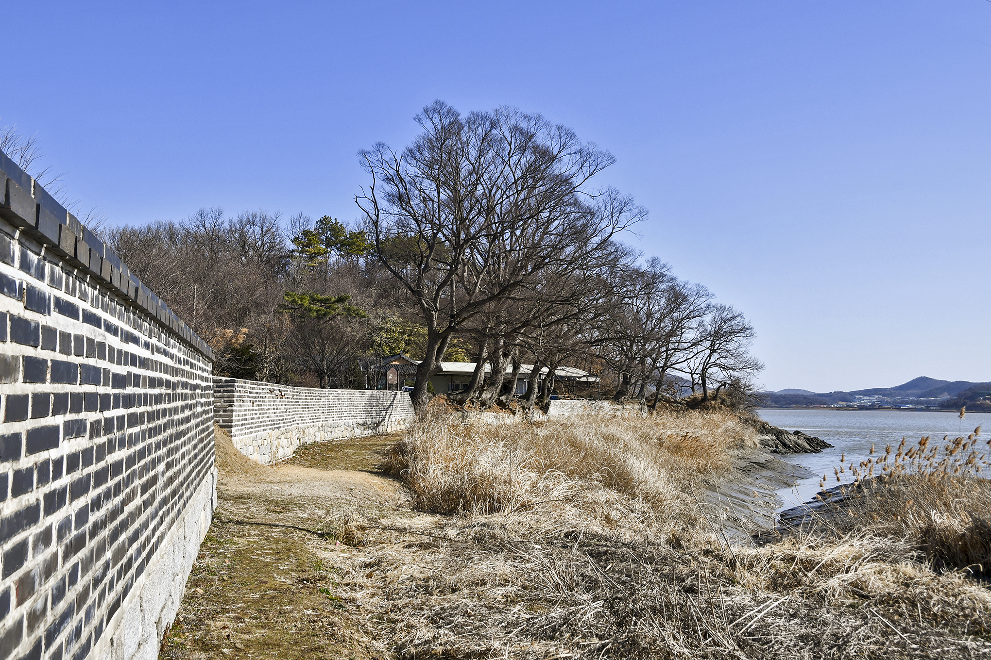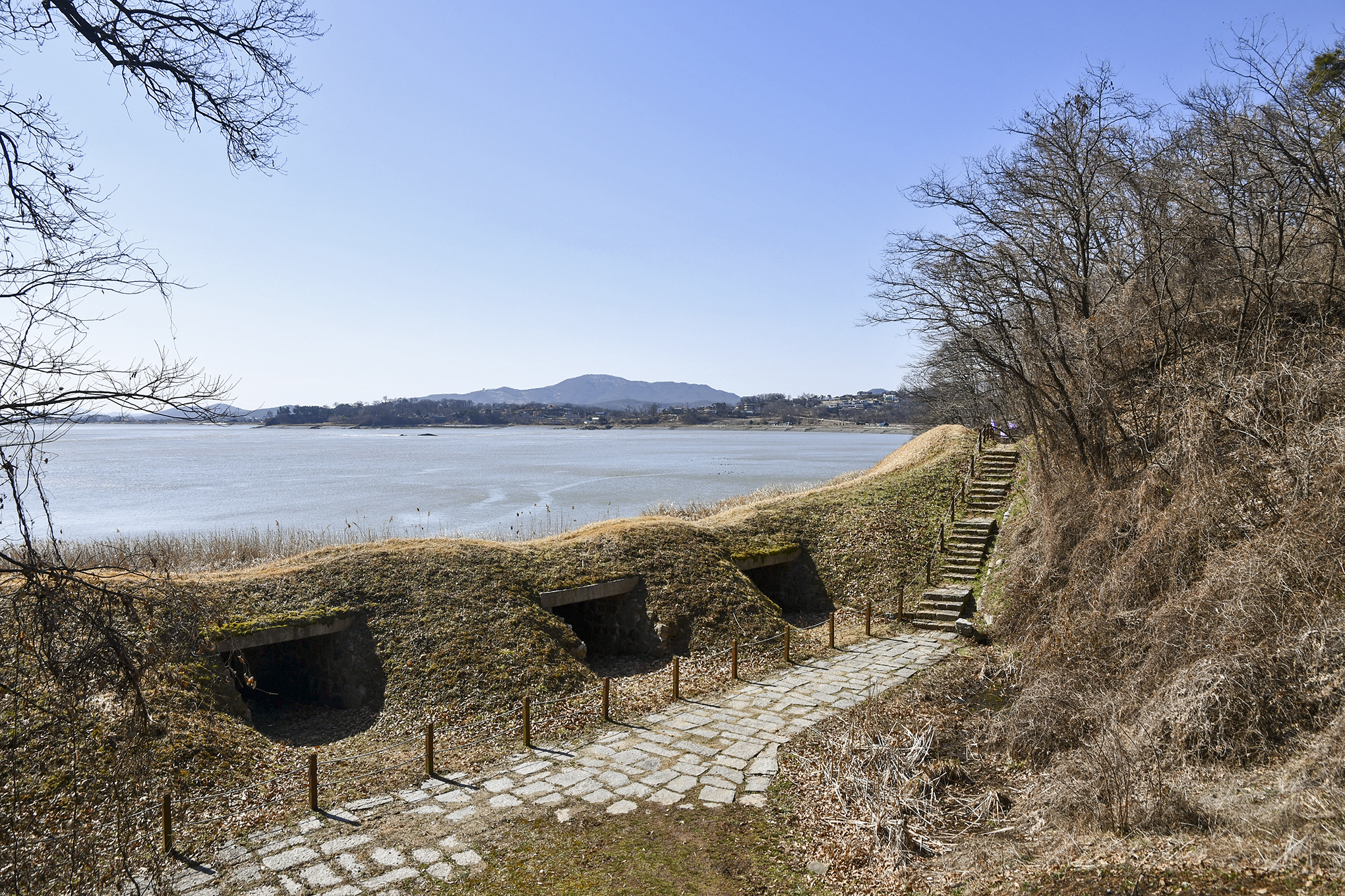 종점까지 10.9km 남은 지점에 낮게 쌓은 화도돈대가 모습을 드러낸다.