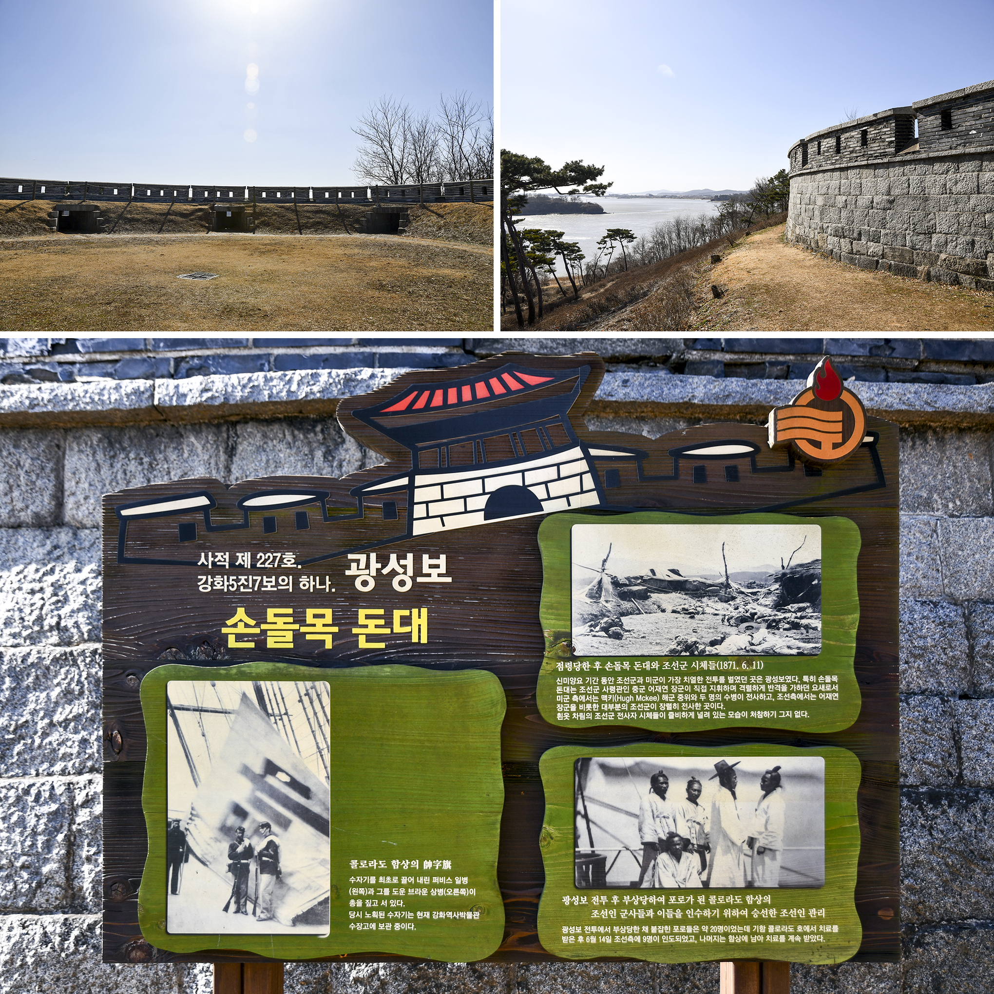 손돌목돈대 주변 3곳에 설치된 광성포대는 병인양요와 신미양요를 거치면서 화력을 증가시키는 일이 시급한 과제로 등장함에 따라 고종 11년(1874)에 설치되었다.