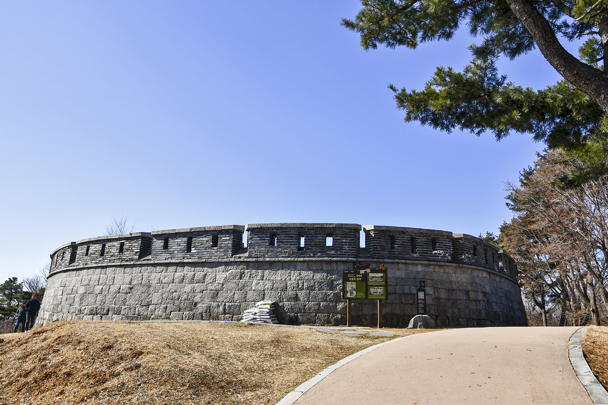 숲을 빠져나오면 강화외성과 연결되어 있는 용당돈대가 앞을 가로막는다.