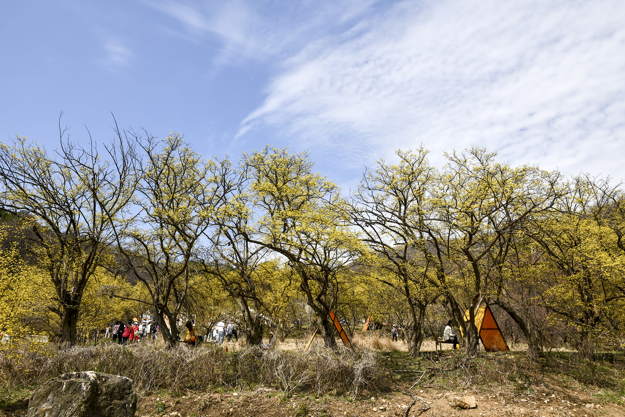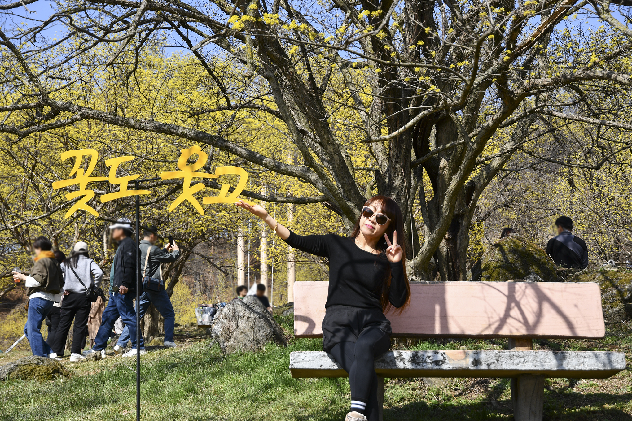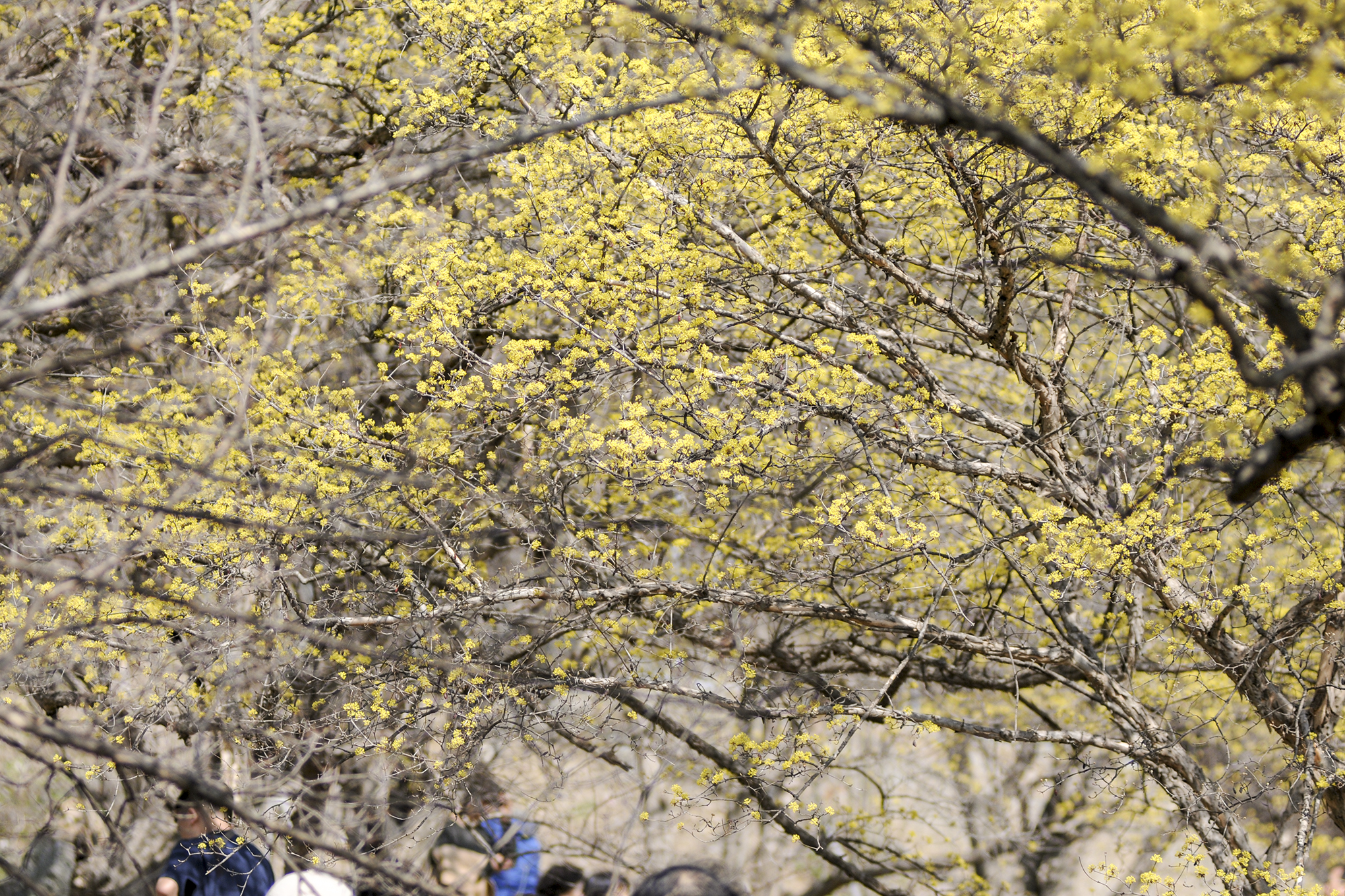 산수유 나무 아래는 이미 많은 관광객들로 붐비고