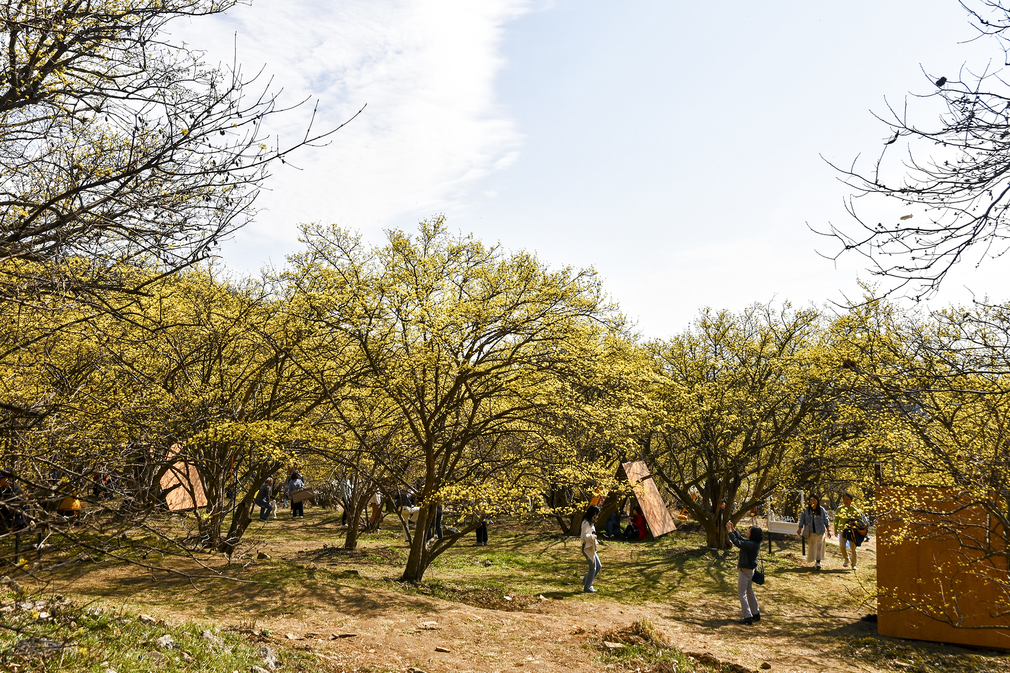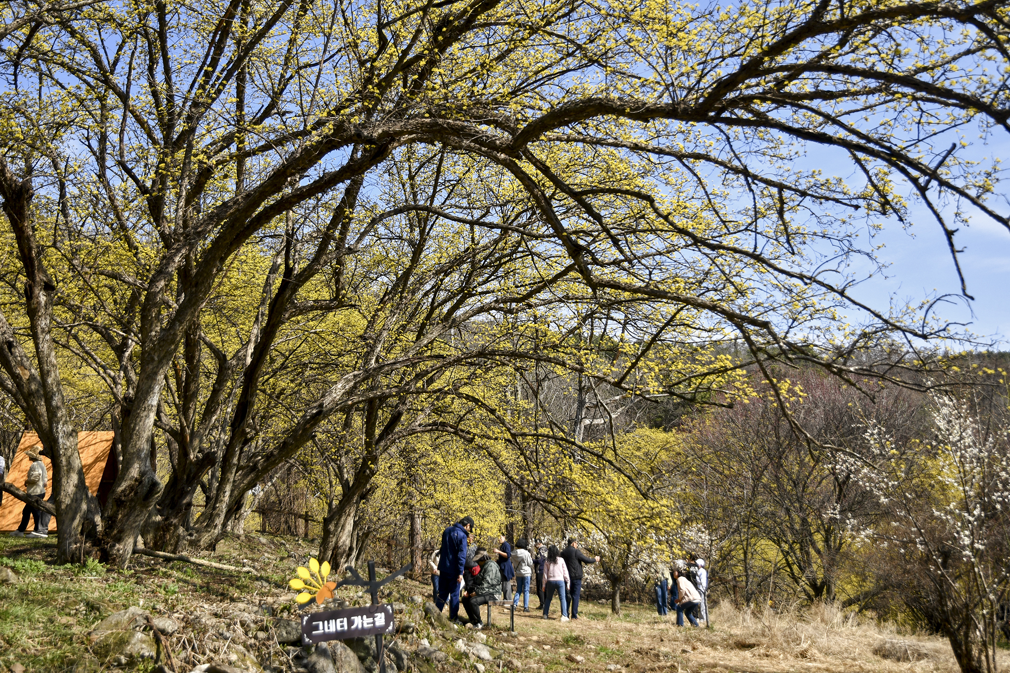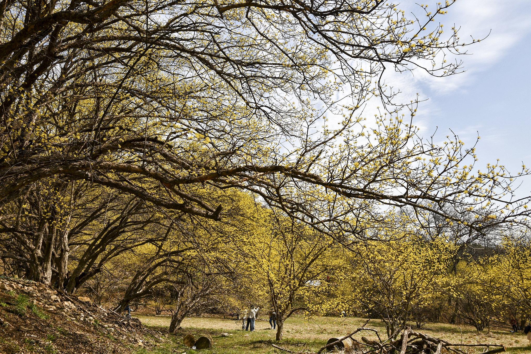 산수유 나무 아래는 이미 많은 관광객들로 붐비고