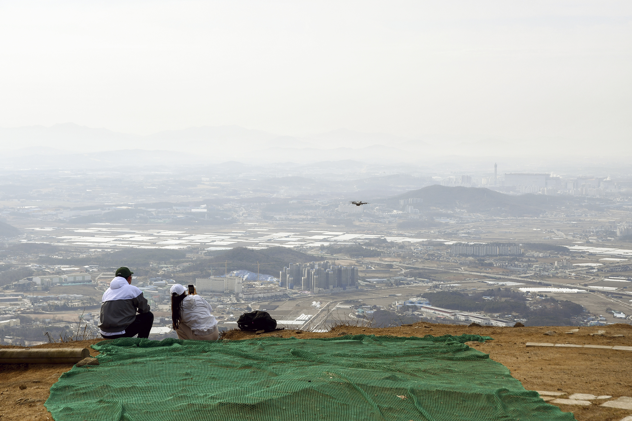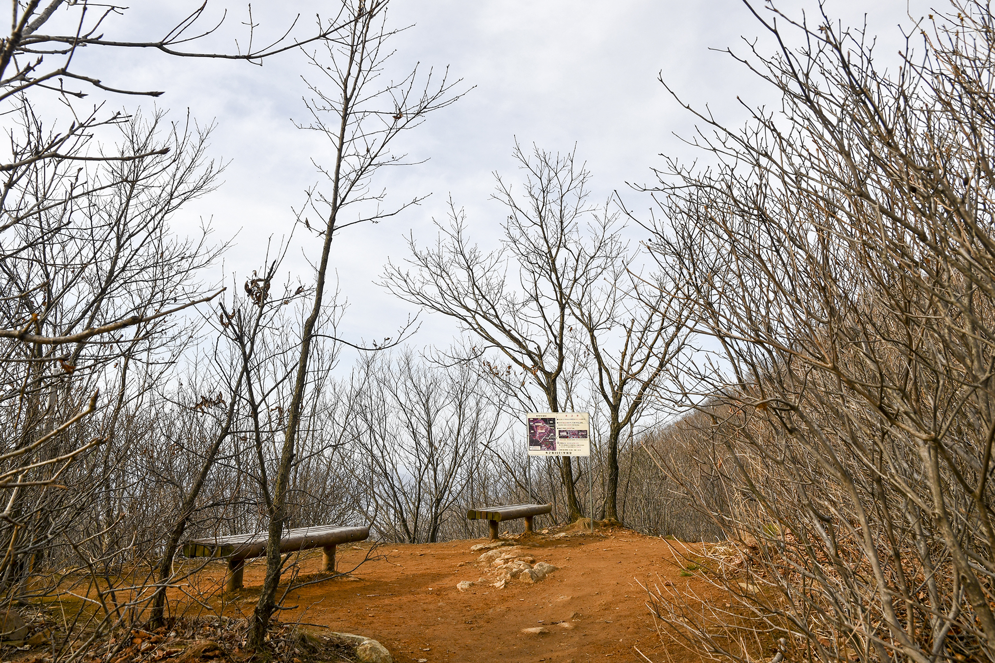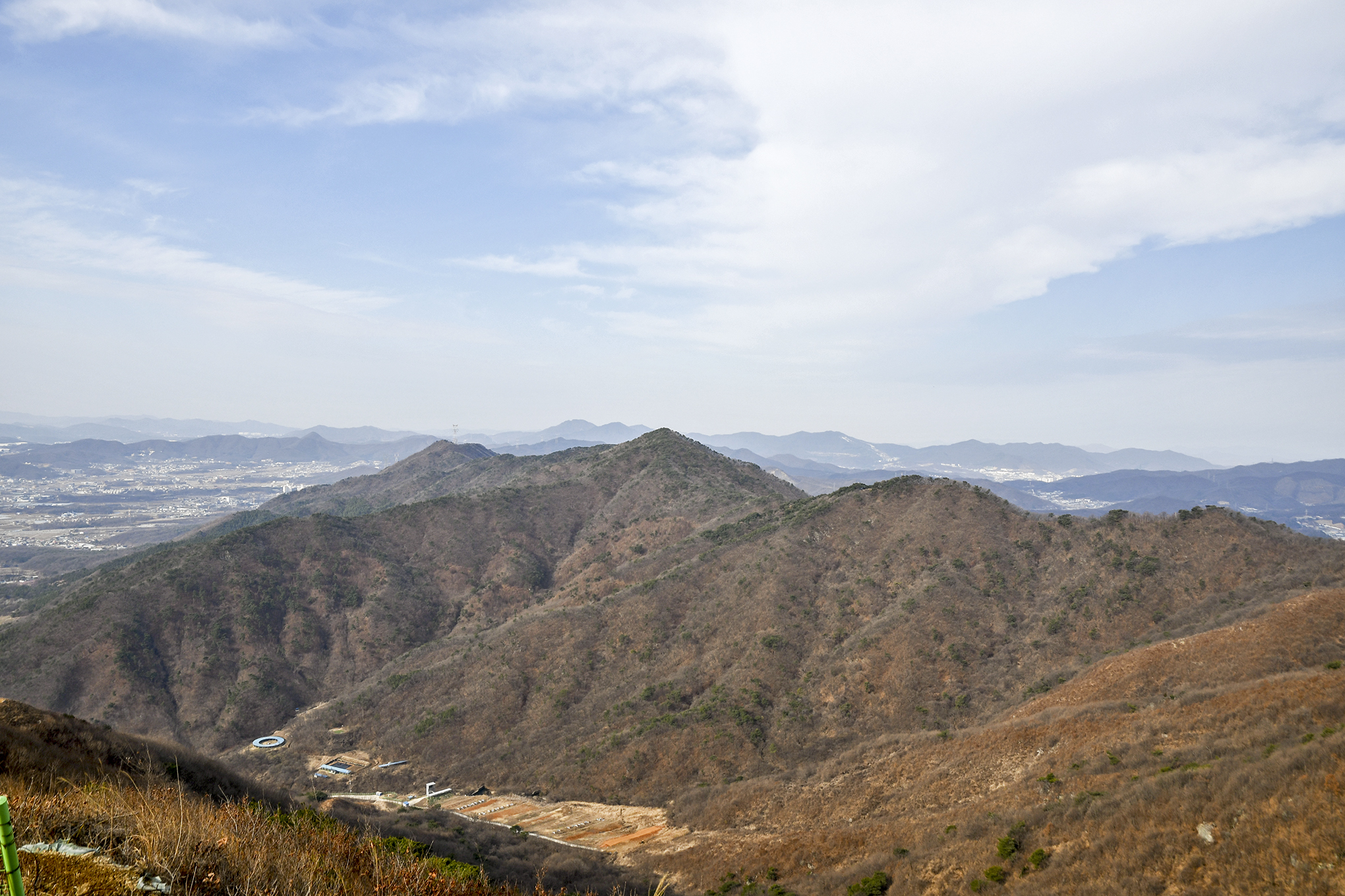산 풍경이 가장 밋밋한 3월이지만 원적산 능선길에는 온통 진달래 나무가 가득해 꽃이 피는 계절에는 산행할 맛이 날것 같다. 불발탄 경고판이 세워진 쉼터에서 잠시 목을 축이고,