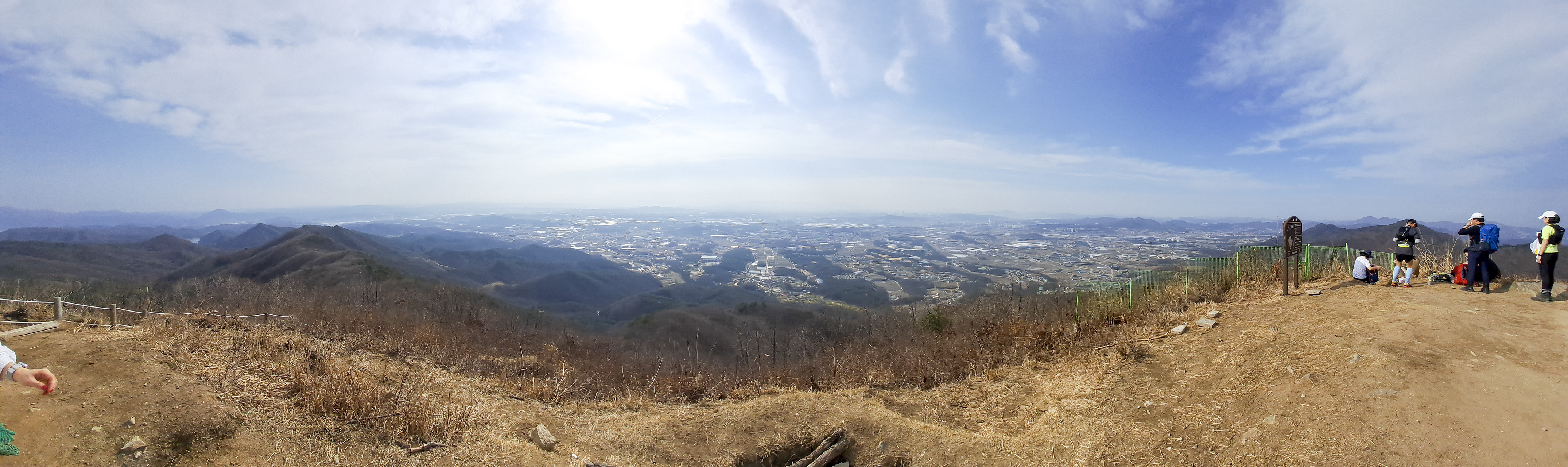 해발 564m의 원적산은 등산중에는 조망이 거의 없는 산이지만 정상에서는 사방이 훤히 트여 풍광이 아주 좋은 산이다.
