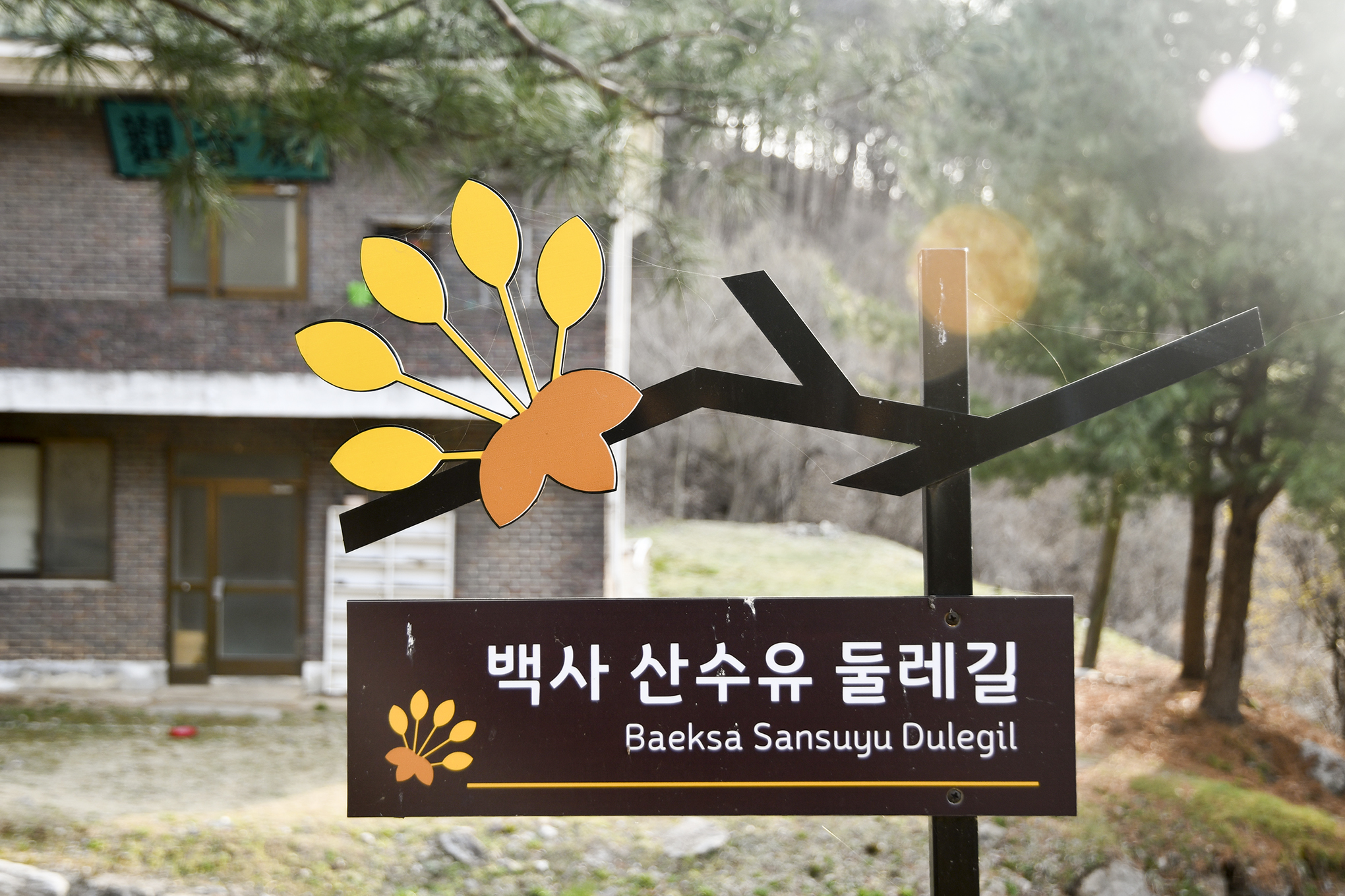 낙수재폭포에서 산수유 마을까지는 쉬운 길로 금새 내려올수 있다. 산에서는 한그루도 보지 못했던 산수유나무가 노란 꽃을 잔뜩 피웠다.