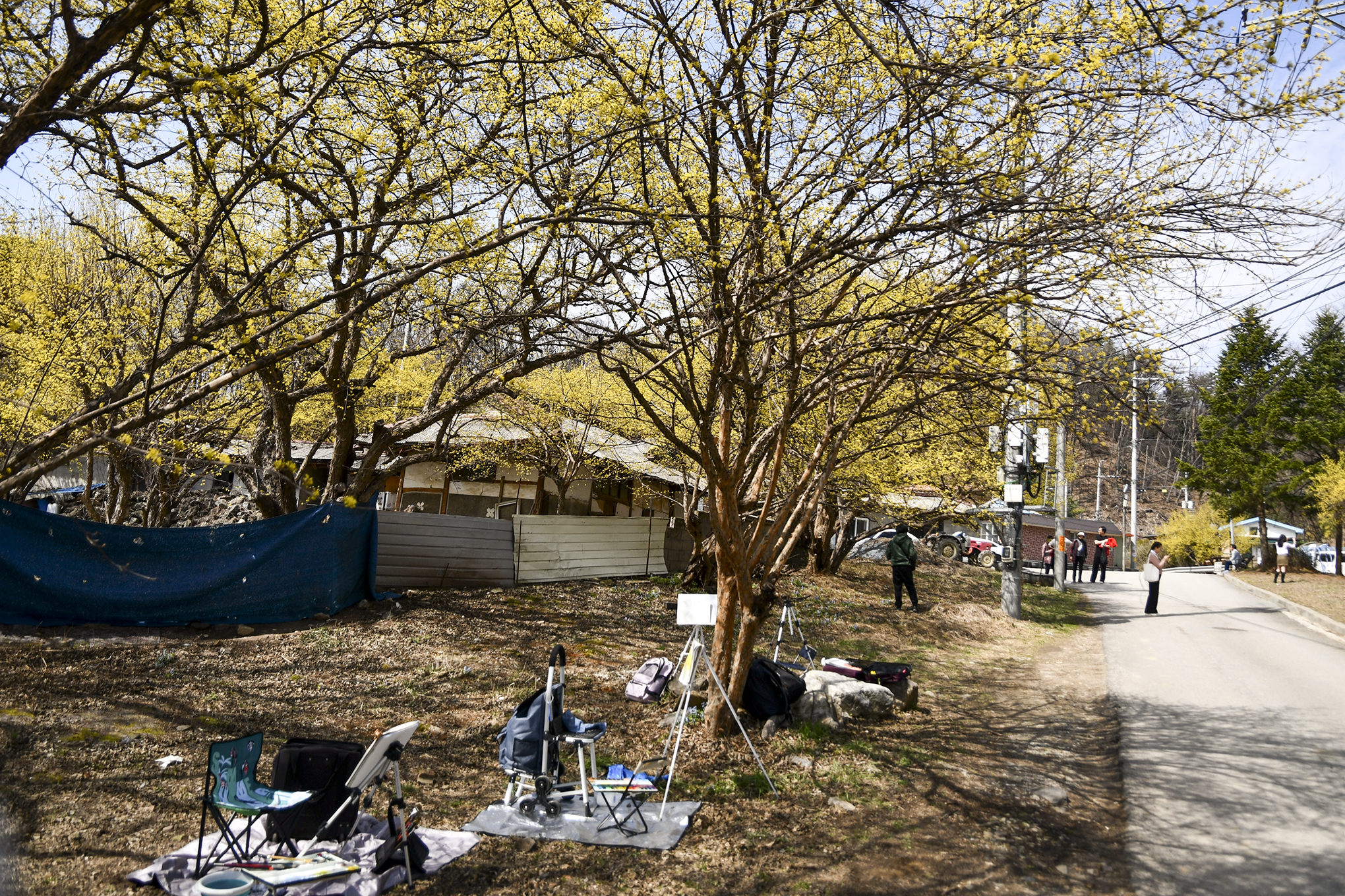 송말리에 도착하니 많은 화공들이 산수유마을을 화폭에 담고 있는 중이었다.