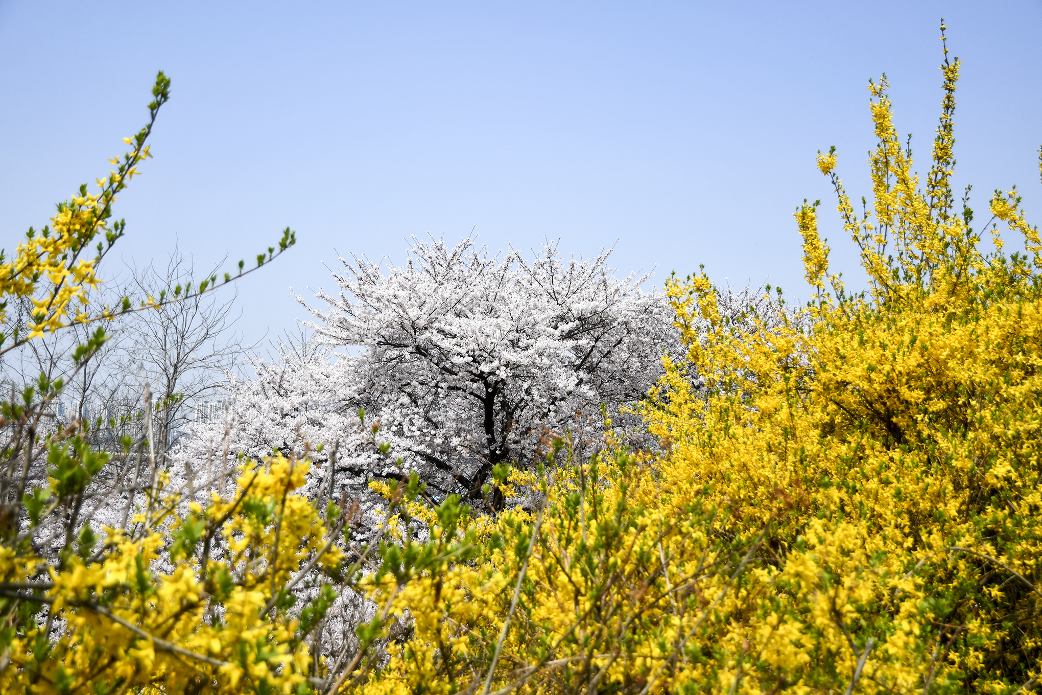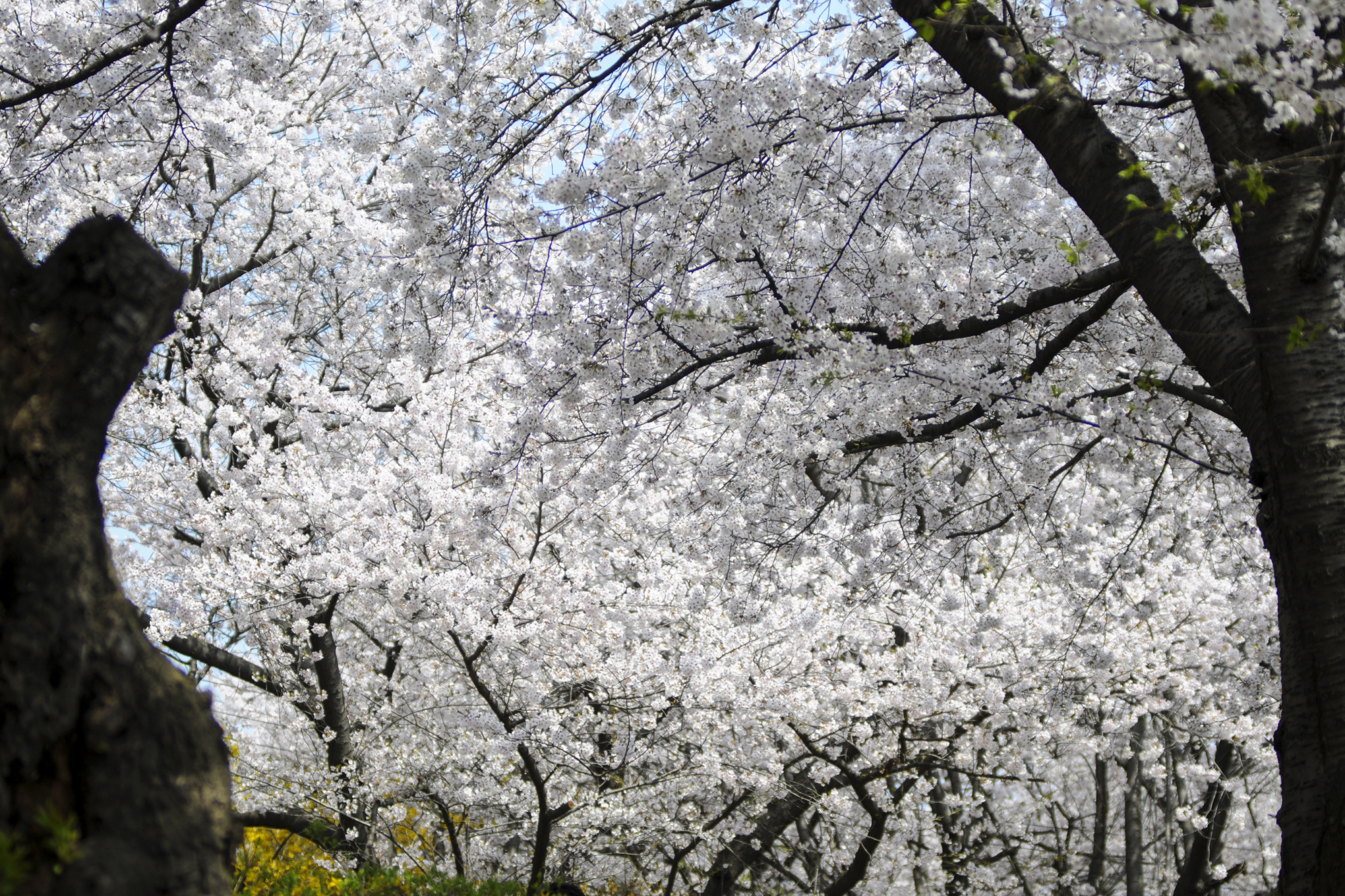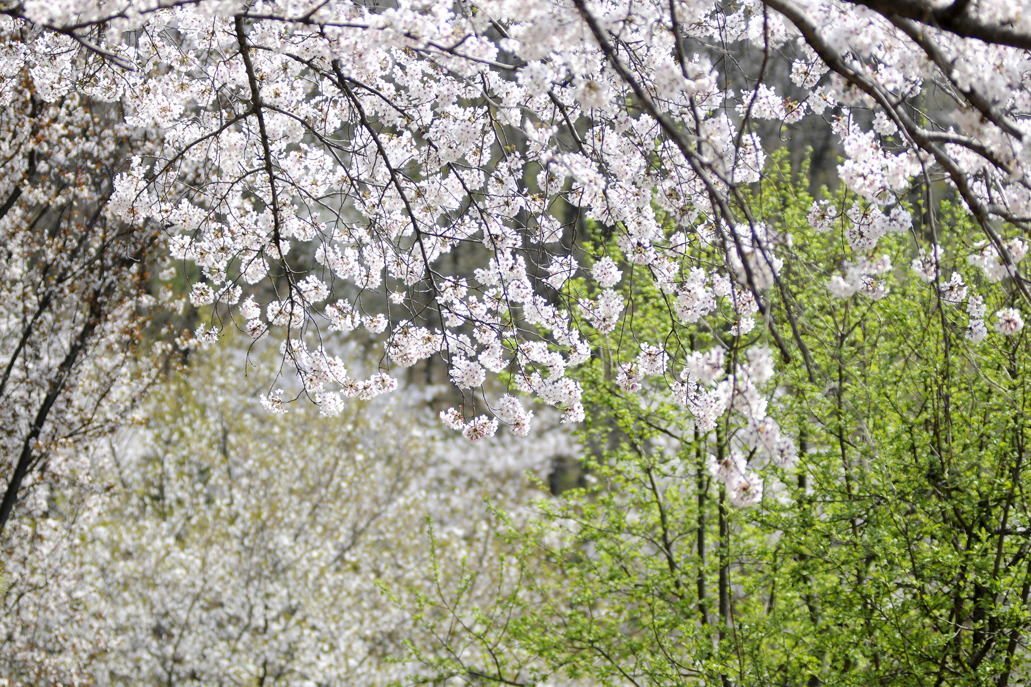 사랑스런 음악이 온 숲에 울려 퍼지고, 아름드리 벚나무가 작은 동산을 뒤덮어 하얀 눈꽃터널을 만들어준다.