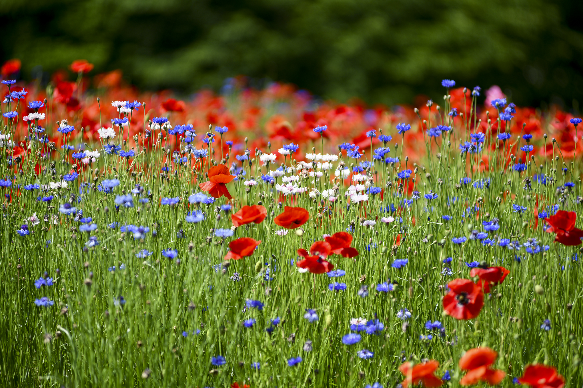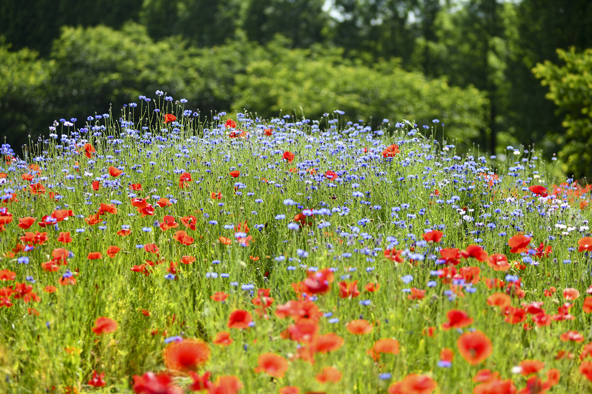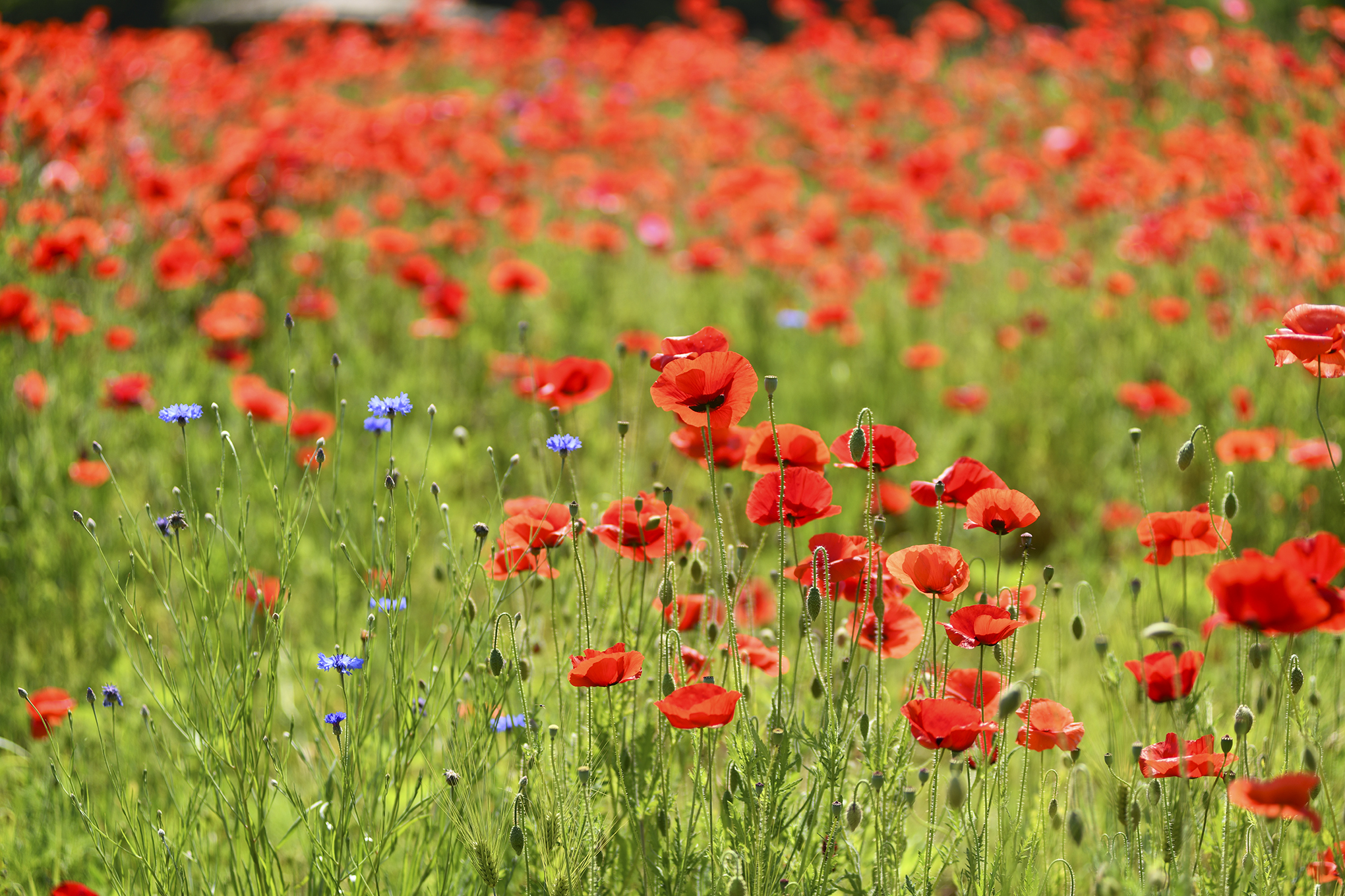 올해는 수레국화보다 꽃양귀비가 더 많이 식재되어 있다.