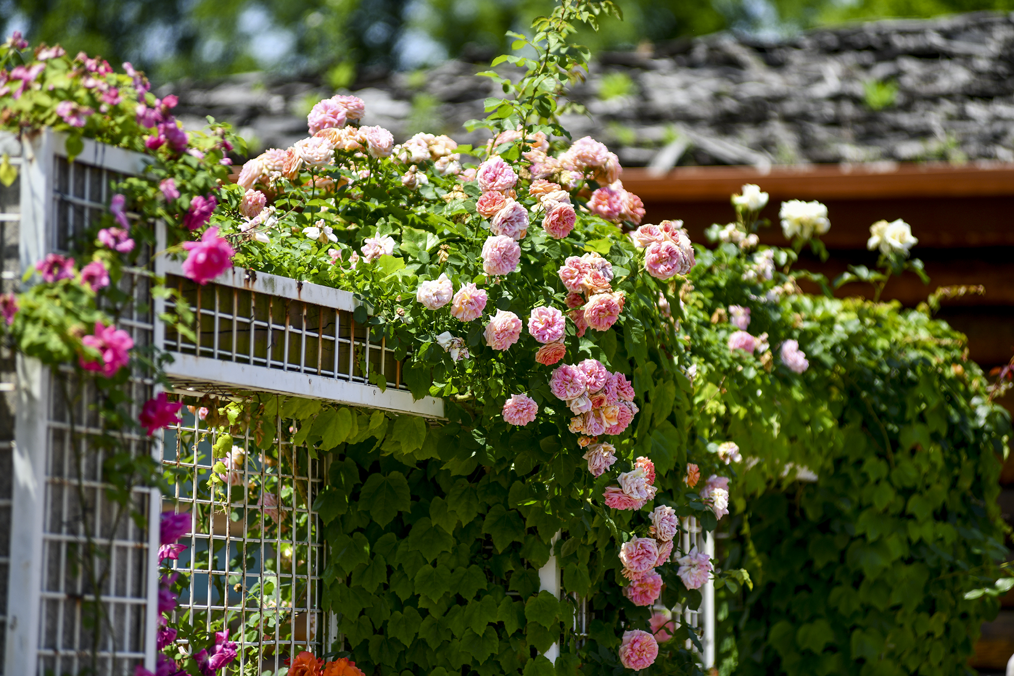 활짝 핀 장미는 풍성한 꽃송이로 진한 향기를 뿜어내고,