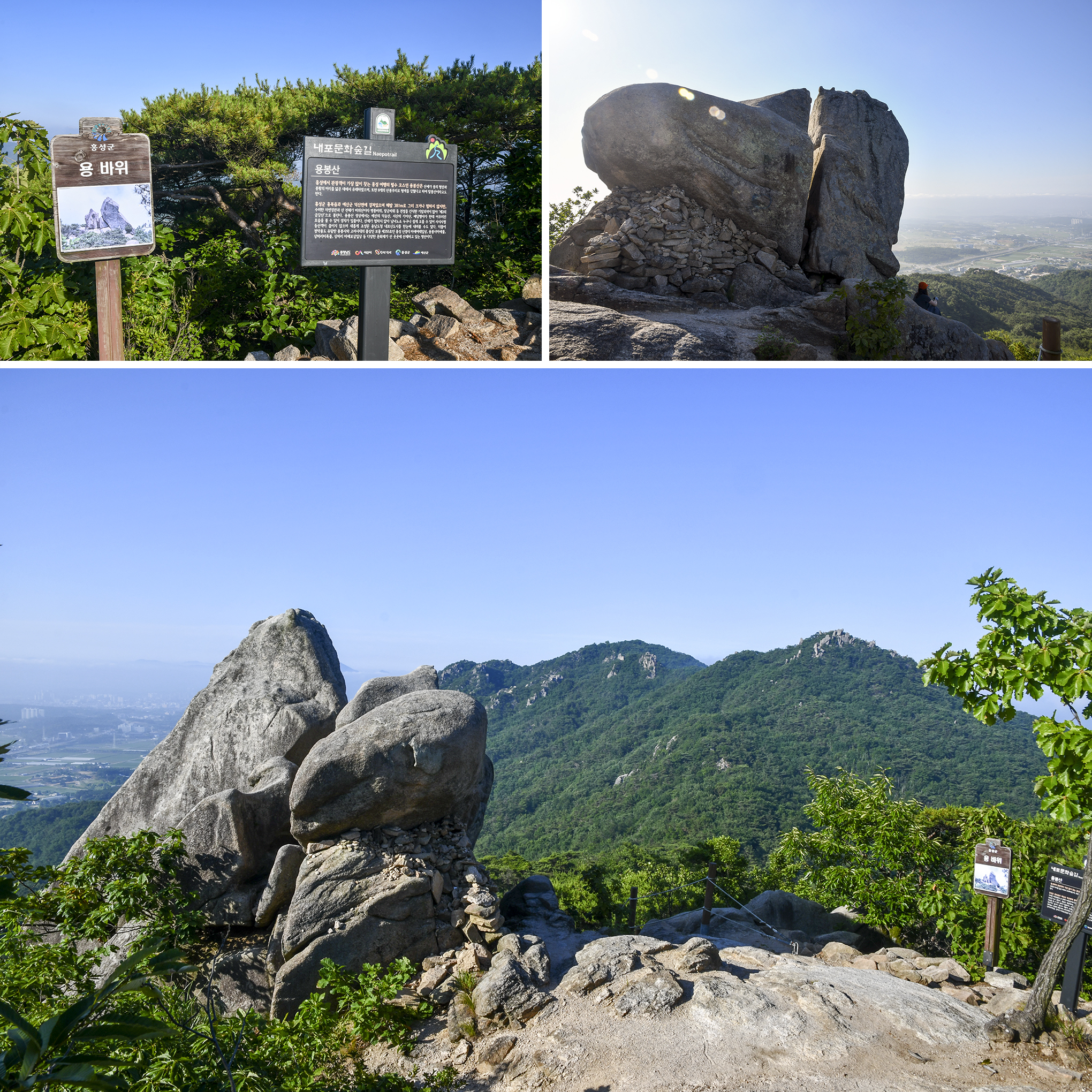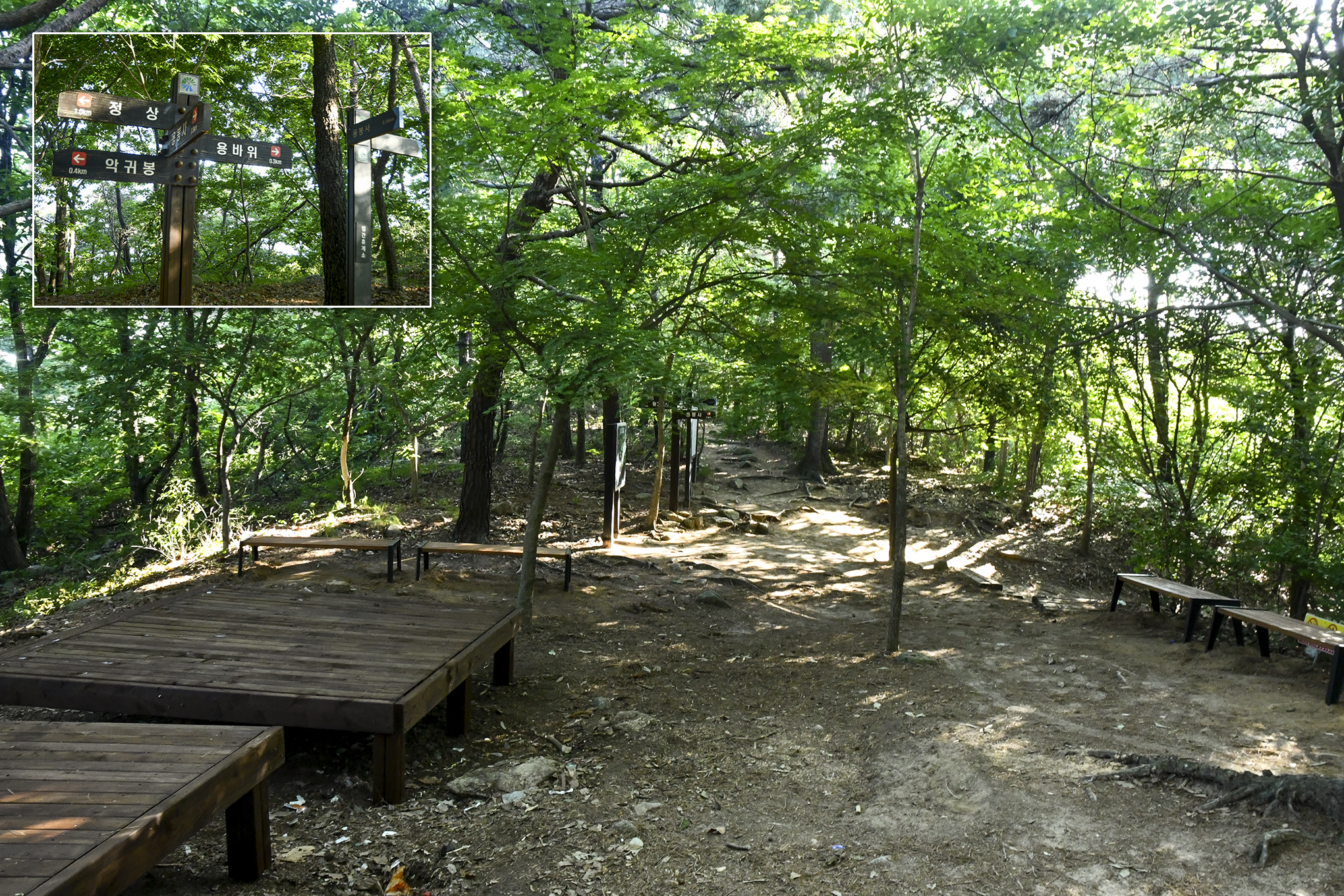 이곳에서 용봉사와 용바위 방향으로 코스를 선택해 갈 수 있고 어느쪽이든 0.3km 거리에 있다.
