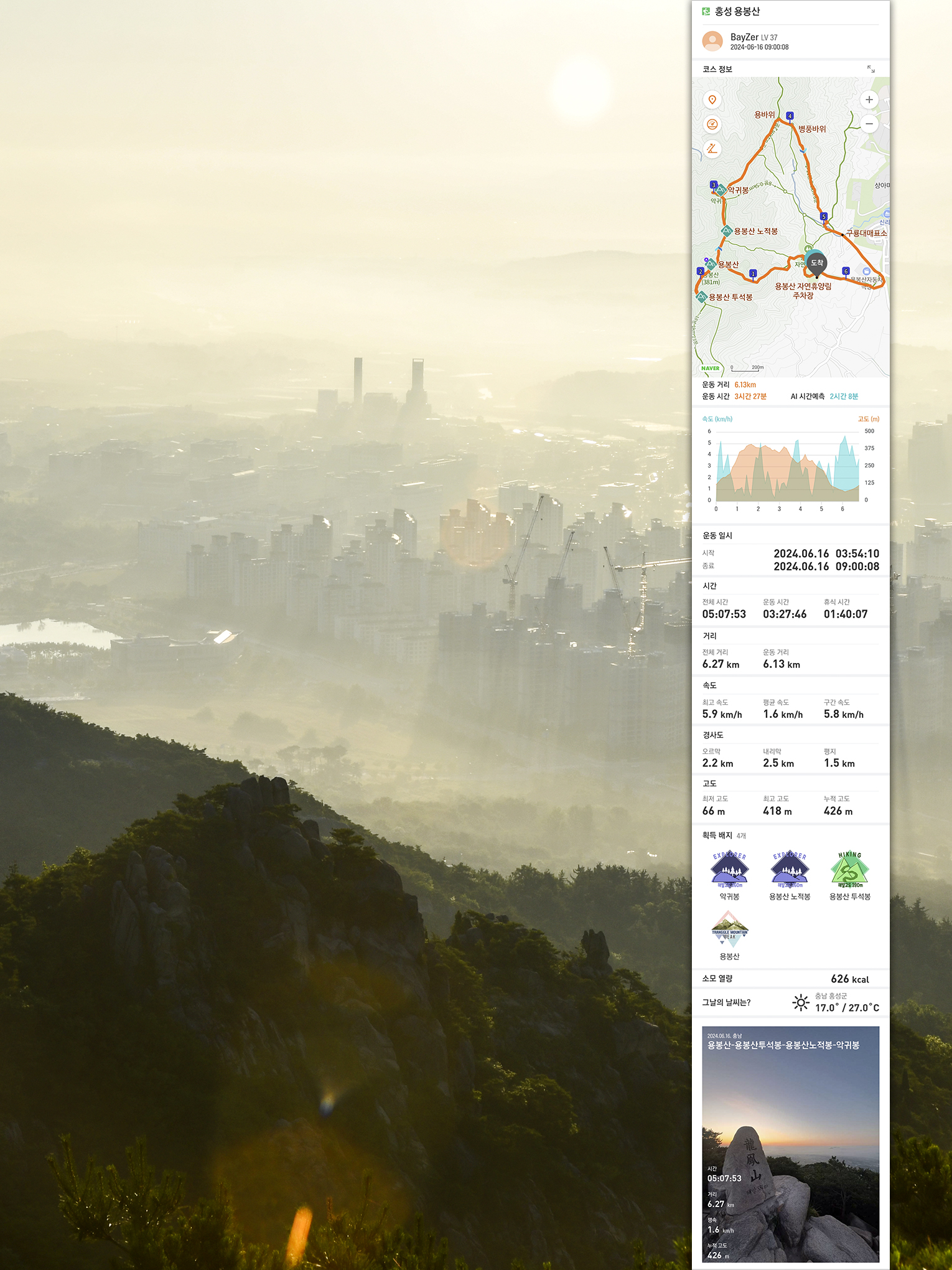 * 소요시간 : 총 5시간07분 (산행 3시간27분, 일출촬영,휴식 1시간40분)