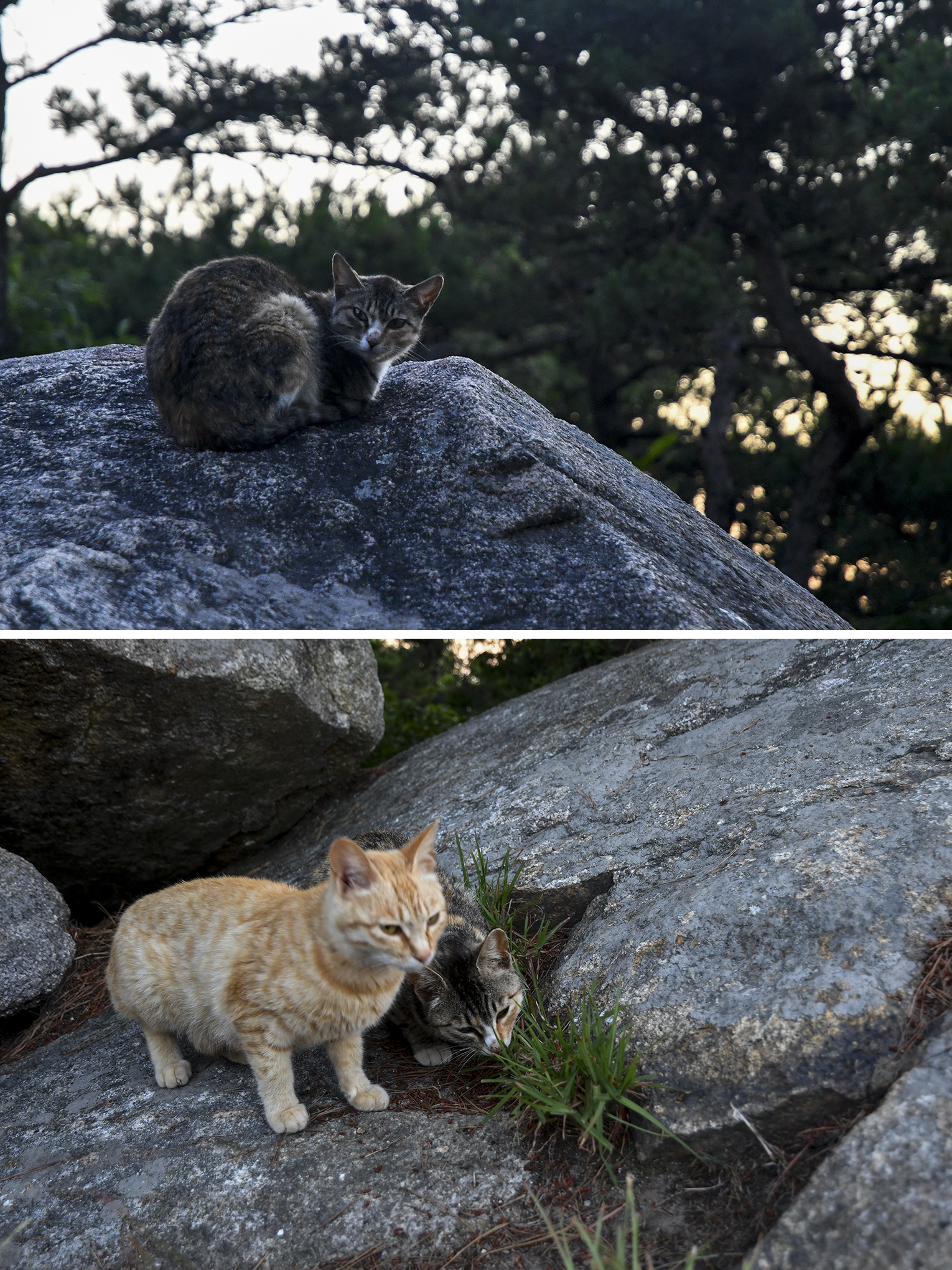 아직 20분 정도 남은 일출시간, 용봉산에서 유명한게 또 하나 있는데 바로 귀엽게 생긴 냥이들이다.