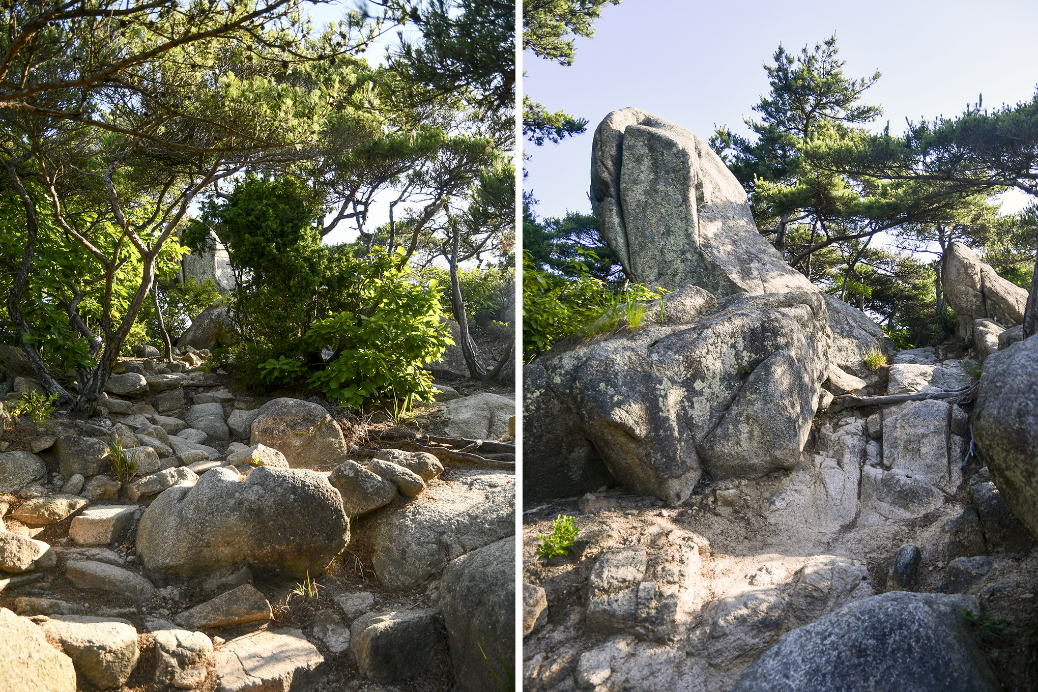 왼쪽 사진은 내려가는 길, 경사가 심하다. 오른쪽 사진은 올라가는 길, 등산로에서도 온통 바위산이라는걸 실감할 수 있다.