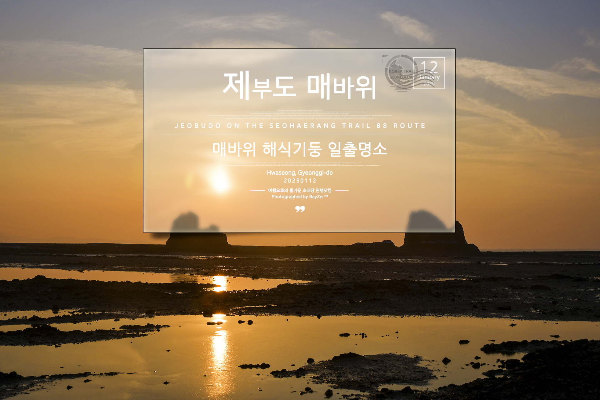 2025.01.12 (경기둘레길 48코스, 화성실크로드 2코스 황금해안길) 코리아둘레길은 우리나라 외곽을 하나로 연결하는 초장거리 걷기여행길이다. 동해의 푸른바다를 보며 걷는 50개 코스 해파랑길과 남해의 쪽빛바다와 함께하는 91개 코스의 남파랑길, 서해의 갯벌과 바다를 보며 걷는 109개 코스의 서해랑길, 그리고 북쪽 48개 코스의 DMZ 평화의길로 총 4,500km를 하나로 연결하는 우리나라 대표 트레일 코리아둘레길이다. 이른 아침 제부도에서 일출을 본 후 서해랑길 88코스 종점인 전곡항으로 이동했다. 종점에 주차후 대중교통을 이용해 시점으로 이동할 예정이다.* 주차위치 : 전곡항수산물센터 옆 무료주차장 서해랑길 화성88코스 지도 코스 : 궁평항정류장 - 해송군락지 - 백미항 - 공생염전 - ..